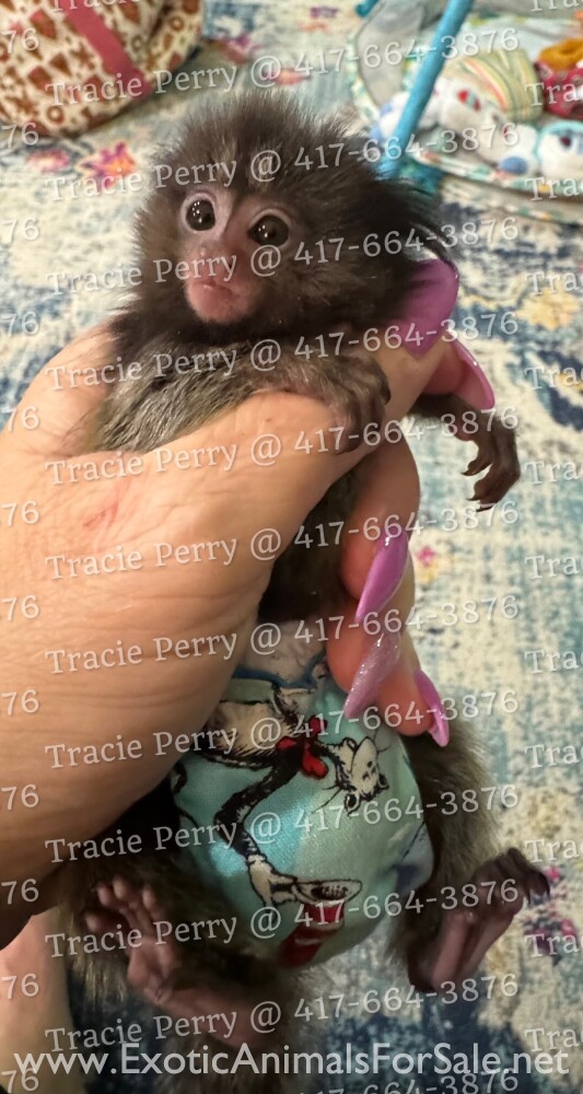 Adorable male marmoset looking for his forever home!! He comes with starter kit, Usda paperwork and health certificate. We will be there to walk you thru everything you need! Call Tracie @ 417-664-3876