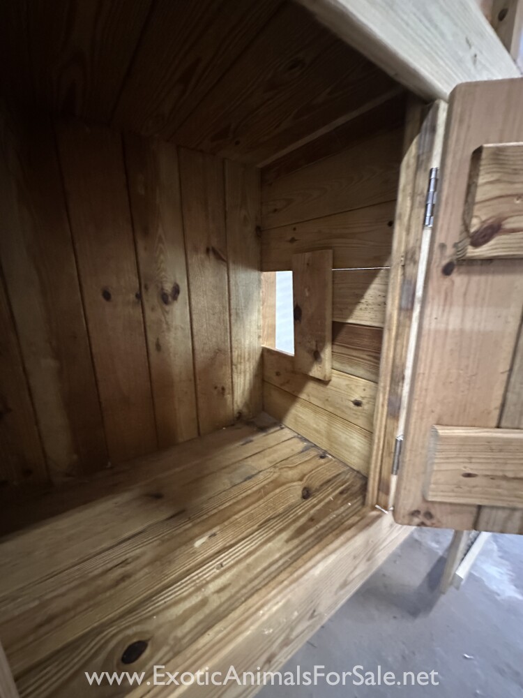 Extremely Sturdy, custom-built wooden enclosure built for exotic animals. Open back that we pressed against white wall. Built from 4x4 legs and decking boards. Has multiple sections. Comes with a built-in automatic water dispenser, super hand...