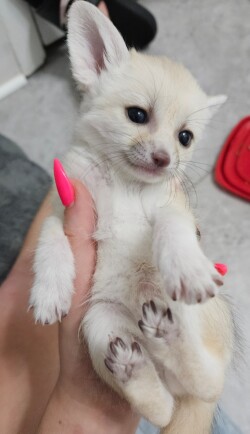 Adorable Fennec Fox Kits! Females Available in April 2026! Located in Tampa Bay FL. Weaned and Potty Trained with harness training and Certificate of Health! Kits Raised on mom with daily human contact and training. Both parents are Raised in home as pets and are in excellent health. No shipping, and deposit Required for Hold. Contact 727-412-1626 for more details. USDA and FWC licensed. If you live in Florida, please be sure that you have the required permit for Class III wildlife which includes Fennec Foxes. If you have questions on how to obtain a permit, or any other inquiries, please call 727-412-1626