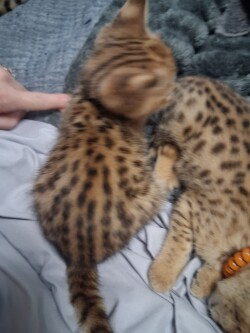 We have 2 females and 1 male F1 sbt Savanah high content kittens! Dob 9-6-25. Asking $18000 for a female or $10000 for a male. The last picture is of their siblings.Message or call me for more pictures.