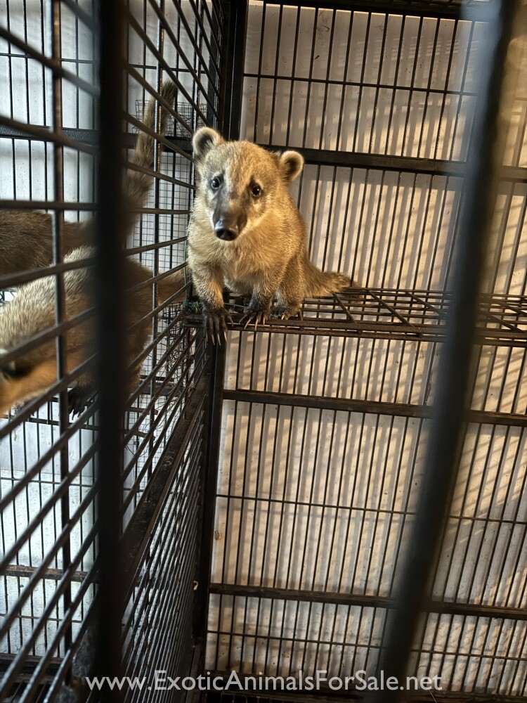 12 wk old mountain coati. Bottle fed at 4 weeks. Male 800 female 900. Will only respond to call or text. 80 miles east of Dallas.