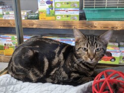 We have a marbled Bengal cat, male available for adoption. He is in store and available now! He and his siblings were pulled at an older age than we typically would and because of this, he is very skittish. The siblings have all came around very quickly, but this guy is taking his sweet time with it. He can still be a pet but will require a lot more patience, time and attention. If you think your home is a good fit, learn more about him @ https://www.panhandleexotics.com/shopmammals.htm#!/Bengal-Asian-Leopard-Hybrid/p/670595750