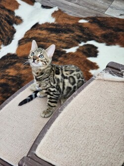 Stunning TICA registered brown spotted bengal male. Beautiful boy with gorgeous rosettes, beautiful coat and extremely glittered coat. Exceptional personality. He will leave fully vaccinated, dewormed, current on flea prevention and vet checked. Raised in home. Health guarantee. Serious inquiries only! All our babies leave with records, one free month of flea prevention and one free month of trupanion pet insurance. Located in Austin Texas. We welcome pickup in person and have delivery available at buyers expense. Serious inquiries only! This boy is amazing!! He is ready to go!!