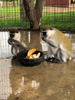 1.1 pair of green monkeys available. These monkeys are not pets, exhibit or breeding animals only. Asking $3000 for the pair.