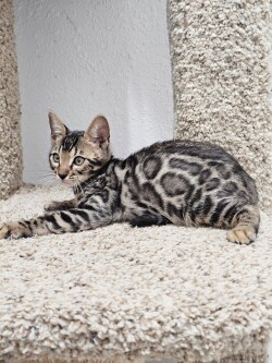Stunning TICA registered brown spotted bengal male. Beautiful boy with gorgeous rosettes, beautiful coat and extremely glittered coat. Great personality. Sweet and playful.He will leave fully vaccinated, dewormed, current on flea prevention and vet checked. Raised in home. Health guarantee. Serious inquiries only! All our babies leave with records, one free month of flea prevention and one free month of trupanion pet insurance. Located in Austin Texas. We welcome pickup in person and have delivery available at buyers expense. Serious inquiries only! This boy is so sweet!