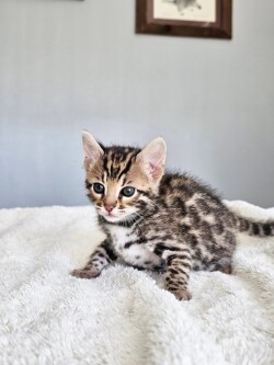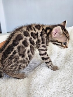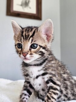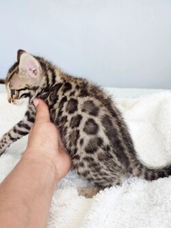 Stunning TICA registered brown F1 bengal male. 50% asian leopard cat 50% sbt bengal. Half leopard. Beautiful boy with gorgeous rosetted leopard spots and stunning face. Baby is being bottle raised. He will leave with one vaccine, dewormed, current on flea prevention and vet checked. Raised in home. Bottle raised. Health guarantee. Serious inquiries only! All our babies leave with records, one free month of flea prevention and one free month of trupanion pet insurance. Located in Austin Texas. We welcome pickup in person and have delivery available at buyers expense. Serious inquiries only! Half leopard cats are amazing cats but not for everyone. Email for any and all questions.