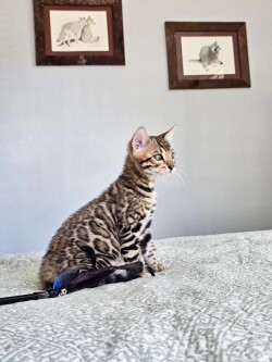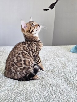 Stunning TICA registered brown spotted bengal male. Beautiful boy with gorgeous rosettes, beautiful coat and extremely glittered coat. Exceptional personality. He will leave fully vaccinated, dewormed, current on flea prevention and vet checked. Raised in home. Health guarantee. Serious inquiries only! All our babies leave with records, one free month of flea prevention and one free month of trupanion pet insurance. Located in Austin Texas. We welcome pickup in person and have delivery available at buyers expense. Serious inquiries only! This boy is so sweet!