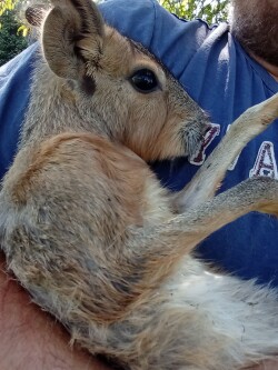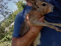 Patagonia mora/ cavy. He is parent raised but handled regularly. He is still shy but easy to work around.