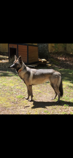 Three yr old Female Wolfdog. Spayed UTD on shots. Good with other dogs. A little shy, Stays in house mostly, House broke will use pad if necessary. Located in Jacksonville Alabama. Contact number 256-706-0857 or 256-605-4009.