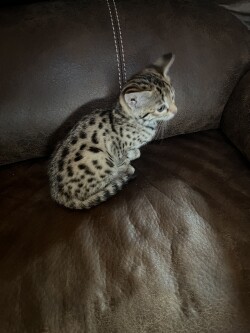 We have 2 F2 Savannah girls available.D.O.B.11-16-2025 they will be that checked healthy come with age-appropriate vaccines. These girls are beautiful they’re uniquely different with the nice ears. Nice black inky spots. One has a lighter basecoat than the other. Both are beautiful. Please check your state exotic laws for owning an F2 Savannah . TICA reg. Text/ call 937-248-3337