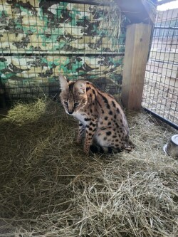 We have a gorgeous one year old male African Serval available now. He is hand raised, highly socialized, and very imprinted. He is fully intact and would also make an excellent future breeder. He is $3,000 with local pickup in MS, we are USDA licensed, please inquire for additional details. Serious inquiries only, available to qualified facilities/handlers.