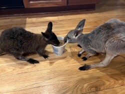 Little Miss Tilly - 10 month old female kangaroo. Used in animals encounters so very calm, sweet and spoiled. On bottle, eating Mazuri and hay. USDA facility in Western New York. $3500 female kangaroo, $2000 male split wallaby.