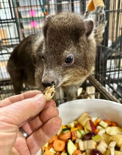 Ellie, our 5-year-old friendly female African Rock Hyrax - bottle raised