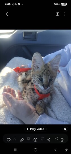 Female Serval needs new address. This will be a fun kitten for someone. I can help with delivery.