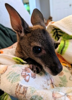 Female Bennett's wallaby joey. Will start in our outreach this month and will be extensively socialized with all ages and environments. The mother has been our best wallaby, with an exceptionally calm and affectionate temperament. Her joeys have been the same in ideal temperaments.