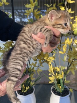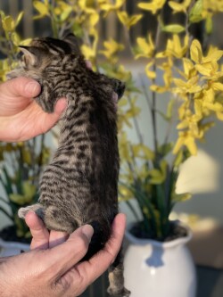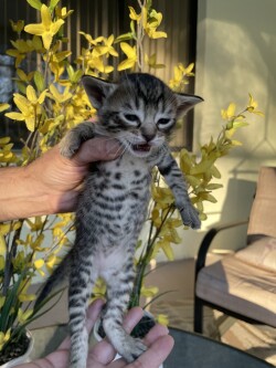 We have 4 Beautiful F5 Savannah kittens available. They are absolutely adorable with really dark markings. If interested please contact Danny at 407-334-0297