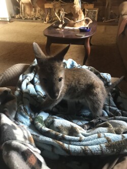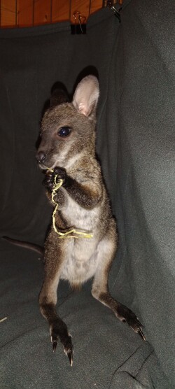 Super sweet little male wallaby. Taken 4 bottles a day. Eating grass and pellets. Loves to run through the house when out of his pouch. He will come with a care package. Located in Henderson Tennessee. I will only answer to text messages. Scammers need not reply