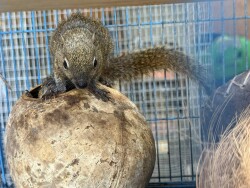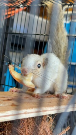 We have one trio of Indonesian Plantain Squirrels available now. This trio consists of a rare leucistic female, and a normal colored pair. This is an unrelated and compatible young trio; they will make an excellent zoological exhibit or future breeding program. This species is extremely rare in the USA. Please inquire about pricing and details, serious inquiries only. We are USDA licensed, pickup in Louisiana.