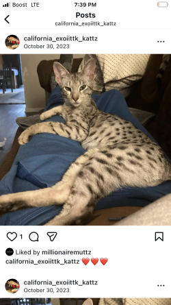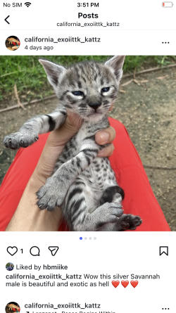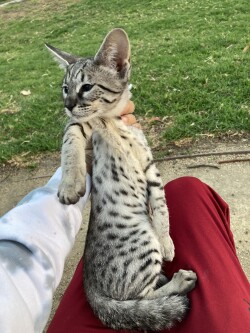 Litter if silver Savannah kittens. F6 generation. The kittens have phenomenal dna and championship blood like. Tica papers and up to date. Send me a message