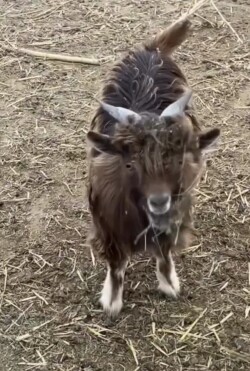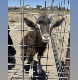 Male mini silky fainting goat. 1 year old. Intact. 15 inches tall. Sire is papered. Mother is not. Been used in a petting zoo and is very friendly