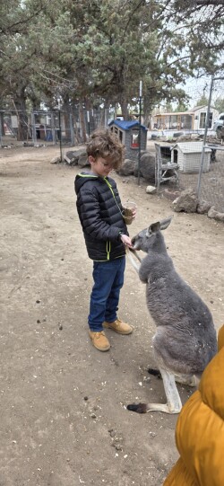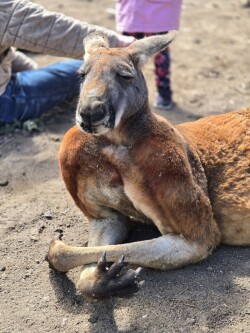 Margaret will be ready for her new home sometime in June. We do not take our babies to bottlefeed until at least seven months and when they are jumping in and out of the pouch. Margaret will come with a care package and lifelong support from our facility. We do ask that proof of veterinarian care is offered along with an application and deposit. Fee includes CVI if living outside of Oregon. The Fee is 4300 if living within Oregon. Patrick the father is a high red extra gentle giant, and Matilda the mother is a blue flyer with very little red. Both parents are on site, loved on and handled daily and have received excellent care. We absolutely do not offer our babies to Zoos or brokers! Experienced Kangaroo keepers are preferred, but willing to work with the right person.