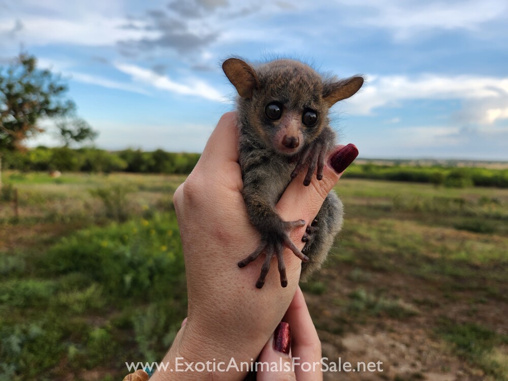 Bushbaby Available! Hand raised baby available, perfect for education or as pet/companion. We will get you all set up with his needed supplies and care- he's an easy little guy who loves snuggling in your clothes. His favorite treats are mealworms...