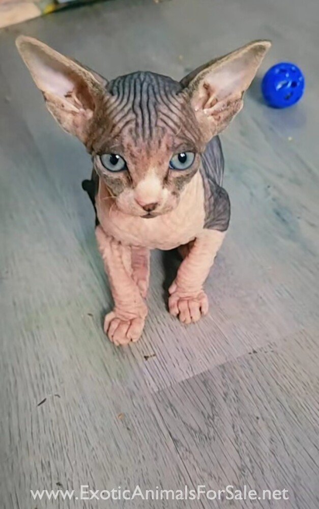 Welcome to the new designer hybrid species.These are across european imported exotic caracal n jungle cat with serval wirh sphynx these beautiful, hairless stripe, tigers and cheetah kittens look u s d a and international transport available come wit...