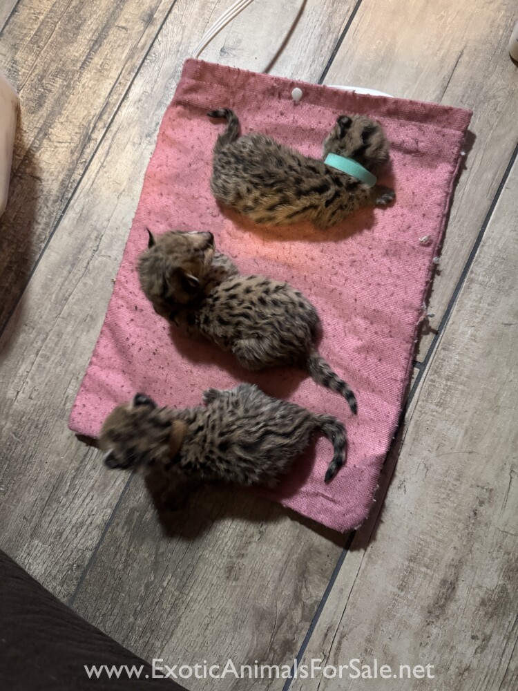 Serval kittens, two male one female. Call me if you’re interested so I can weed out the scammers. USDA facility