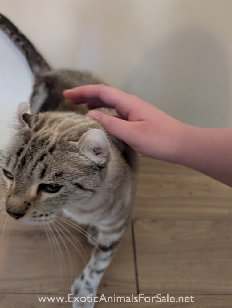 We have a gorgeous one year old male African Serval available now. He is hand raised, highly socialized, and very imprinted. He is fully intact and would also make an excellent future breeder. He is $3,000 with local pickup in MS, we are USDA license...