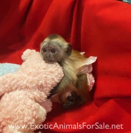 Baby capuchin monkey, just weeks old very sweet! USDA ,Florida permitted. Care sheet included, plus starter kit. With all paperwork Call 352)750-5042 or email joni4342tom@gmail.com