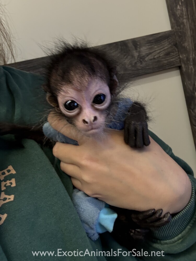 Baby male Green (Vervet) Monkey available now! He is 4 months old, very friendly and playful. He is diapered and bottle fed. No deposit required, pay in full at pick up.