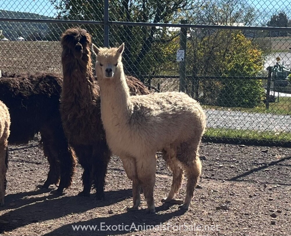 2 white male alpacas born spring 2025. 1 white female born spring 2025 and 1 white female born spring 2024. Asking $400 for the males and $800 for the females.