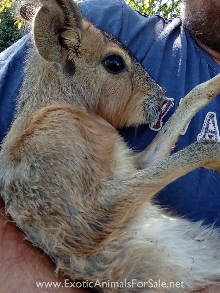 Patagonia mora/ cavy. He is parent raised but handled regularly. He is still shy but easy to work around.