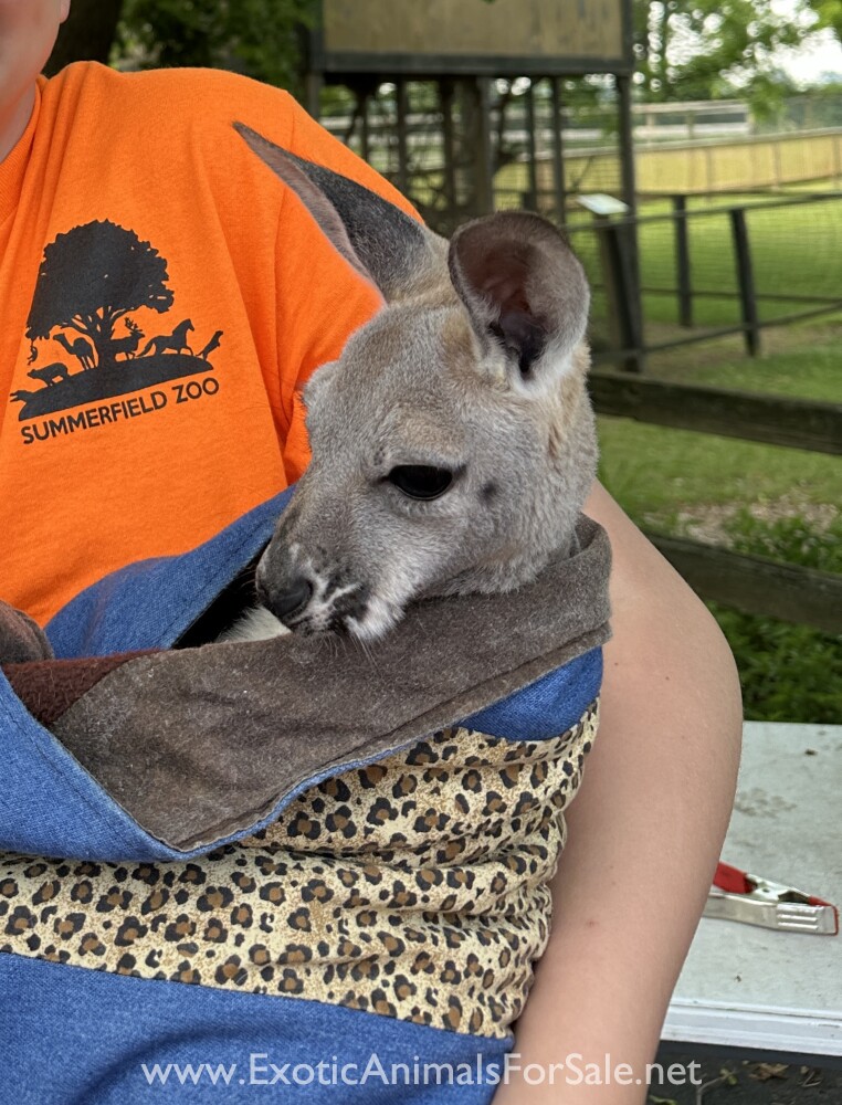2025 female kangaroo bottle baby. Very tame and friendly. Out of the pouch 6 months. Been used for educational programs.
