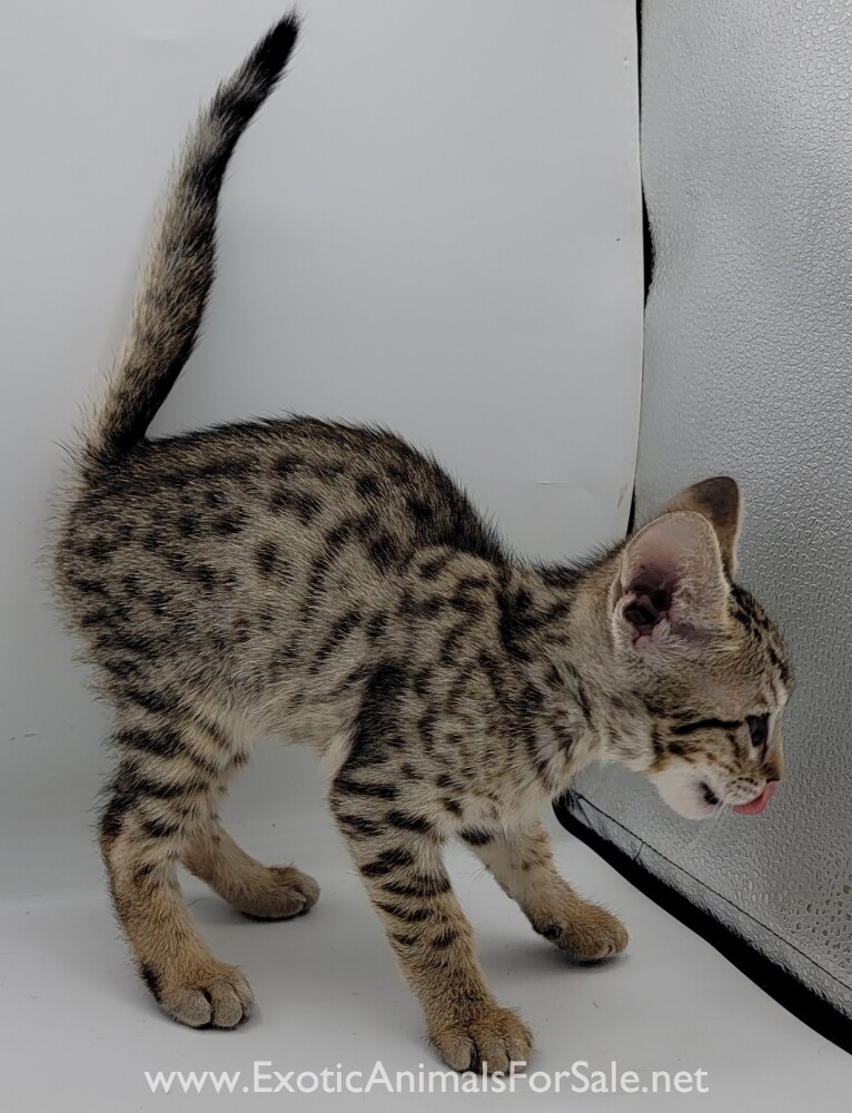 Super nice F4 SBT Savannah Kitten. She is very nice looking and are being handled daily. They are ready for new homes end of August. Our kittens are well socialized and raised with kids, cats and other dogs. They come with a 3 year health guarantee....
