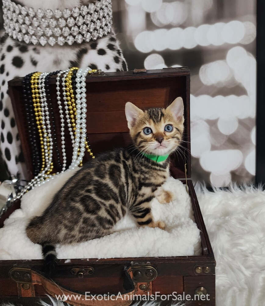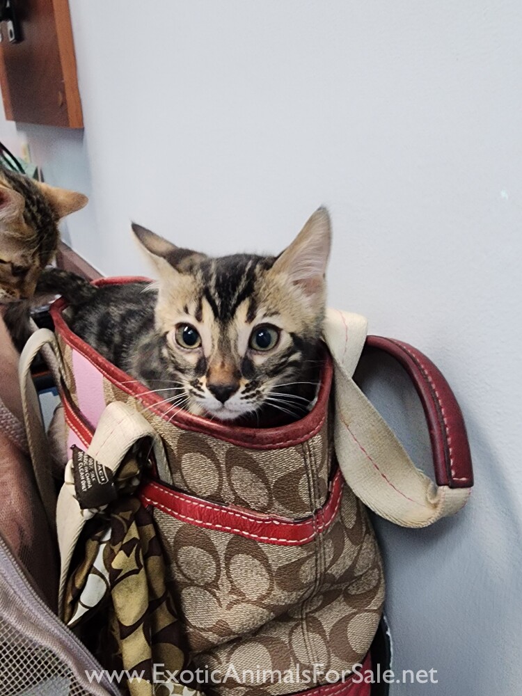 Adorable baby girl! Bold markings, tiny ears, poofy whisker pads, and a very even flow to her pattern. Very sweet dispostion and loves cuddle time. We set aside playtime each and every day to develop a strong bond with our babies. Regular playtim...