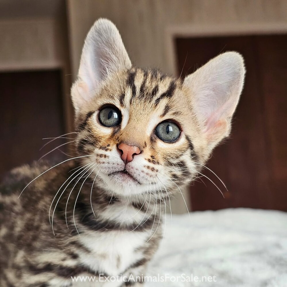 Stunning TICA registered brown F1 bengal male. 50% asian leopard cat 50% sbt bengal. Half leopard. Beautiful boy with gorgeous leopard spots and stunning face with cheetah tears. Baby is being bottle raised. He will leave with one vaccine, dewormed,...