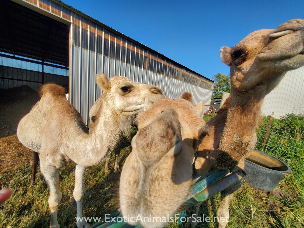 Camels of various ages available. They are healthy, curious and friendly youngsters. Raised with various other livestock and birds. Parents on site. Please call as this is a landline.