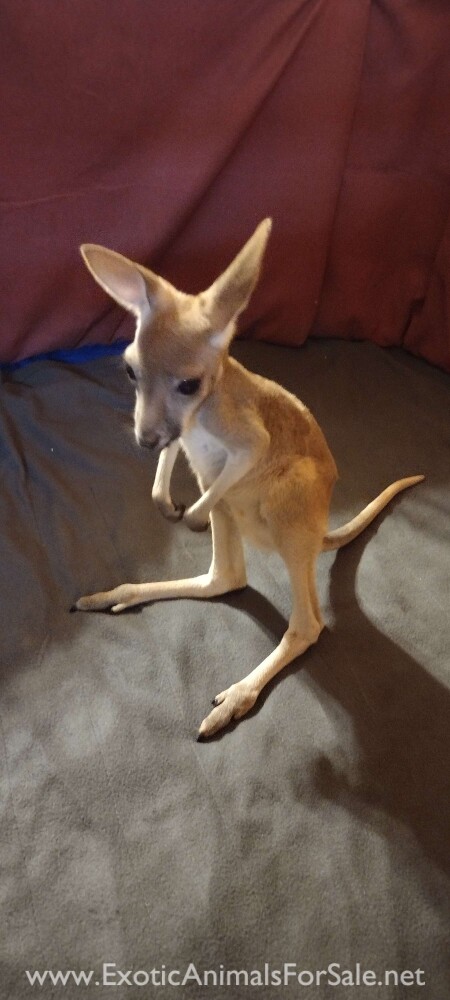 Female Baby Kangaroo, super sweet, bottle fed. Please do not email or txt, please call Jim directly. Must check your local ordinances or special permitting if needed prior to contacting me.