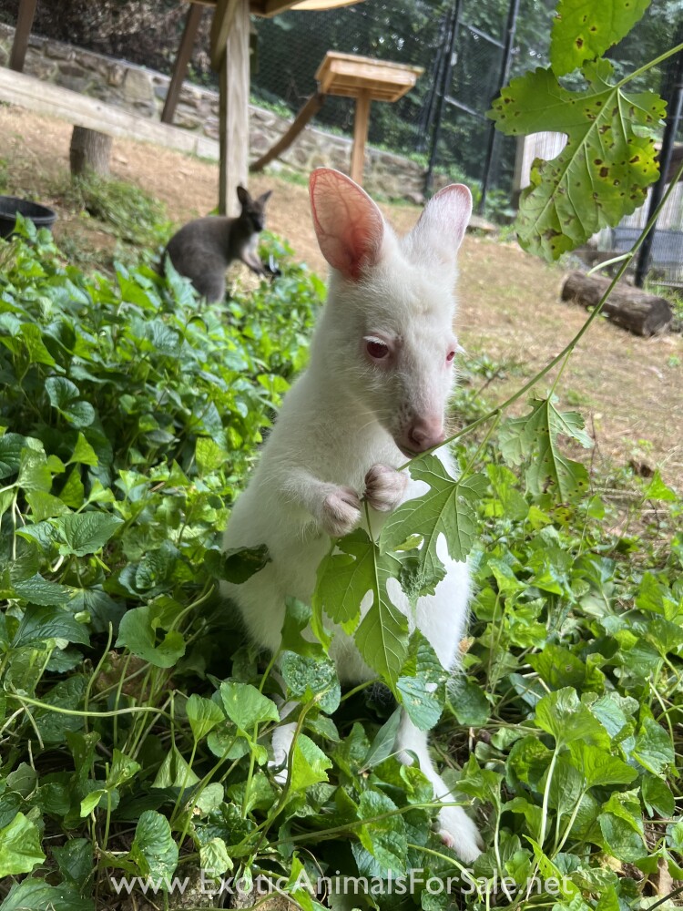 1 year old male wallabies. Ready to go to their furever home. USDA facilities only. Brown $2000 & Albino $2500. Mother raised.